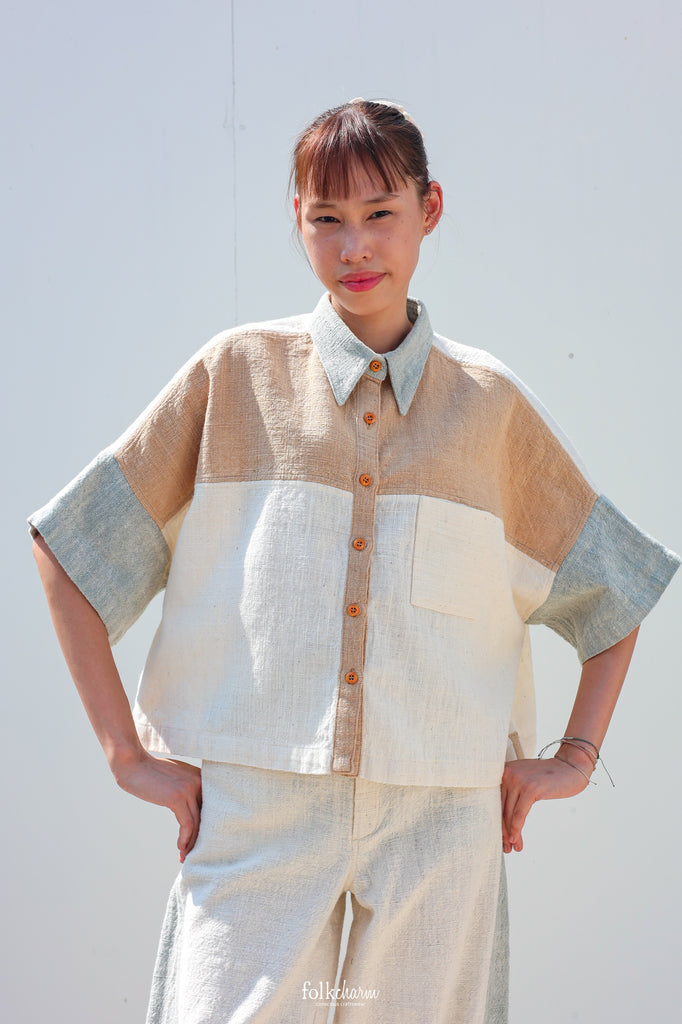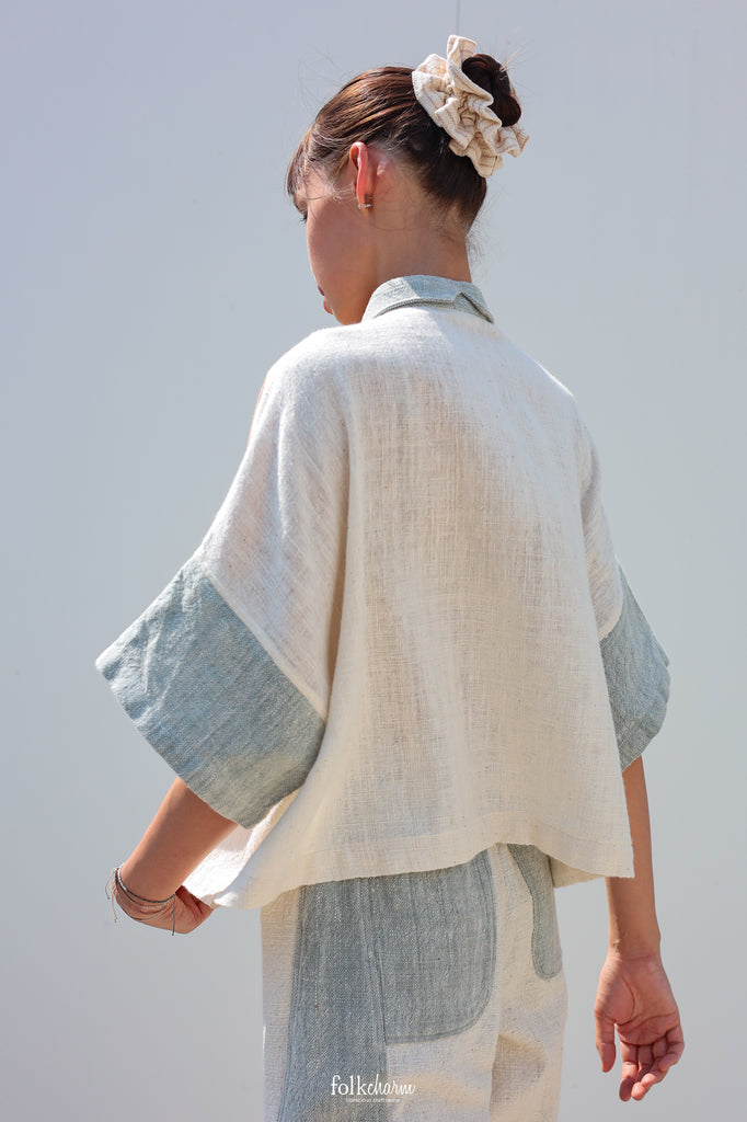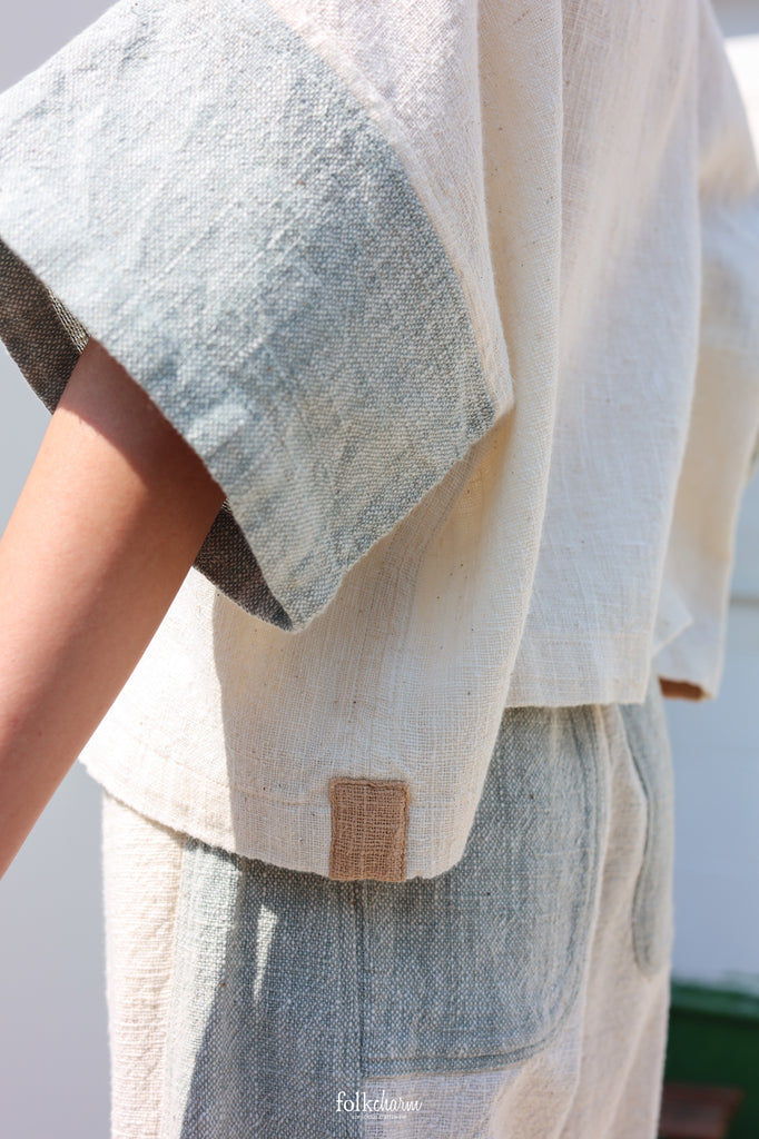 Kimono Shortsleeved Blouse in Buak Blue/Natural Brown