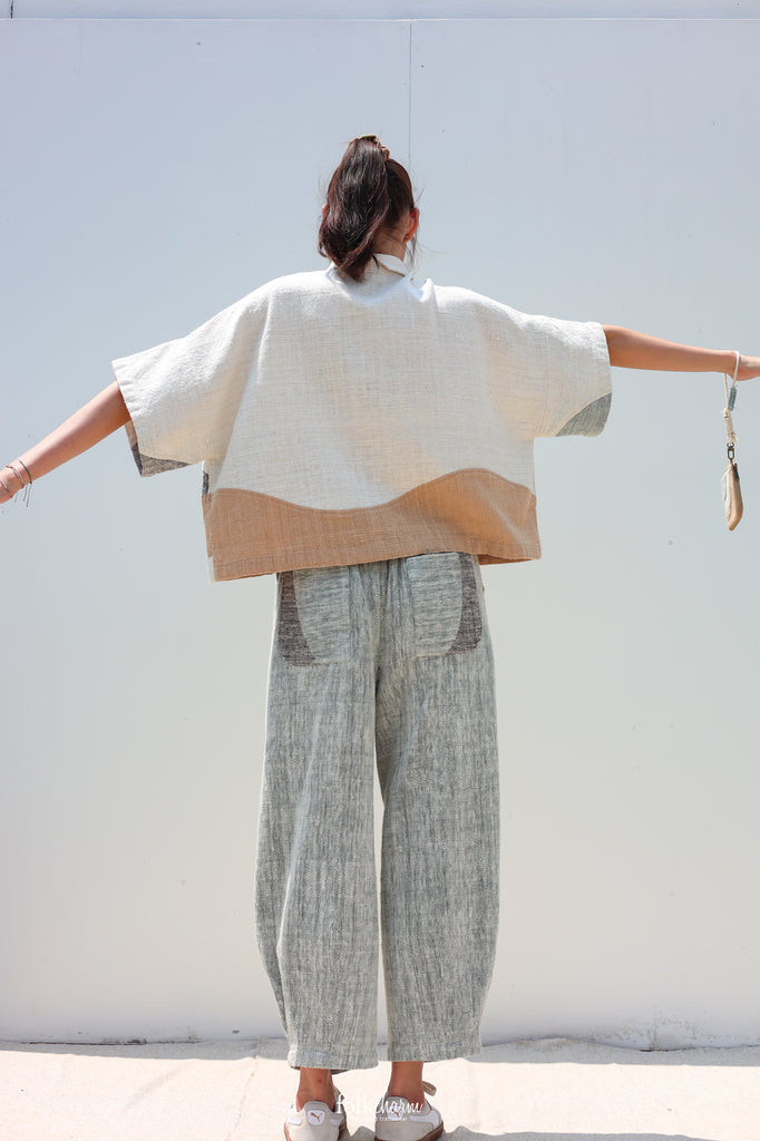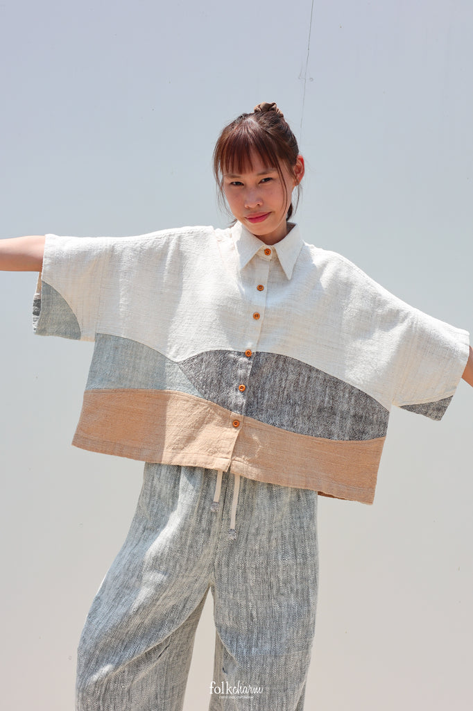 Kimono Shortsleeved Blouse in Buak Blue Patchwork